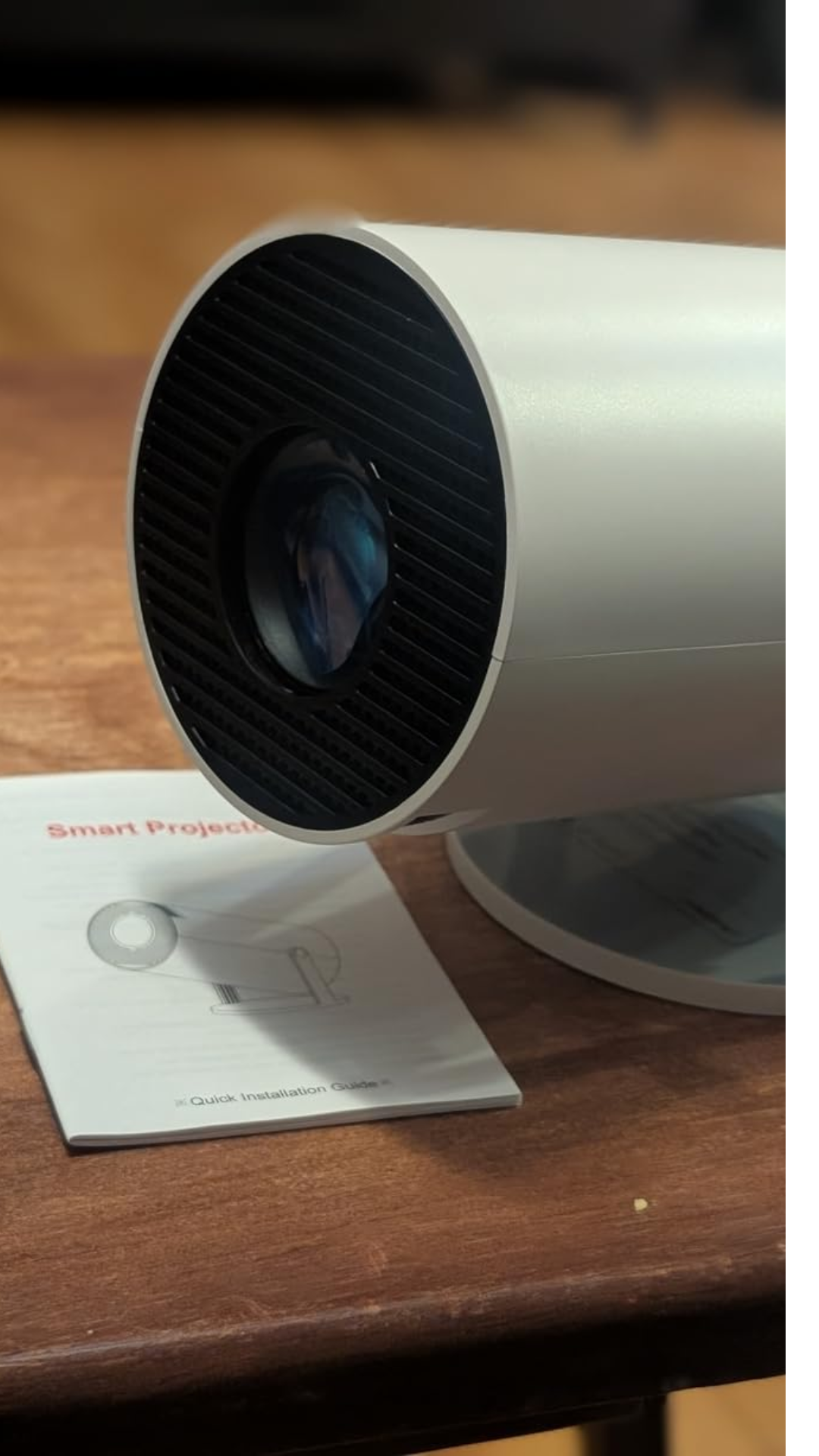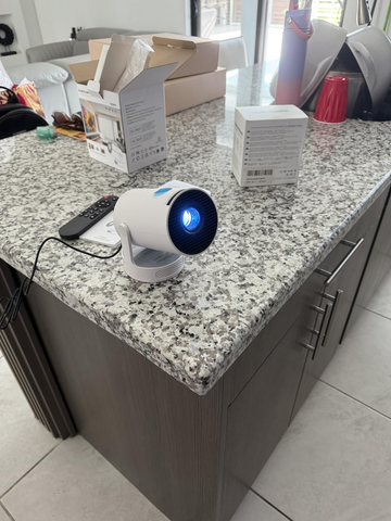 I am completely in love with this projector! The size is unbelievable; it's so tiny and portable, yet the image quality is crisp, bright, and vibrant. I was shocked by how great the picture is for such a compact device. The best part? No need for a giant box, extra wires, or clunky equipment. I just took it out of the box, plugged it in, and it was ready to go. It has everything built-in, making setup an absolute breeze. If you want a projector with incredible quality and no hassle, this is the one.